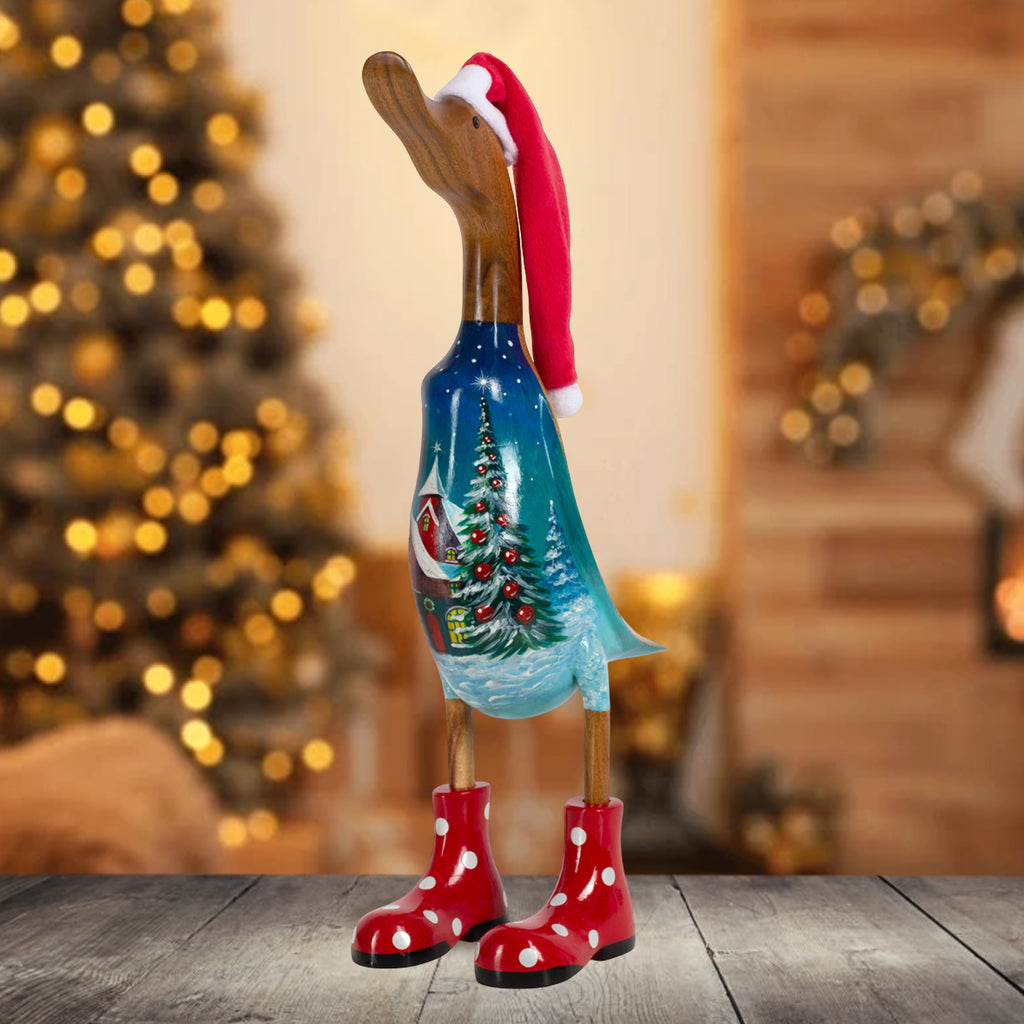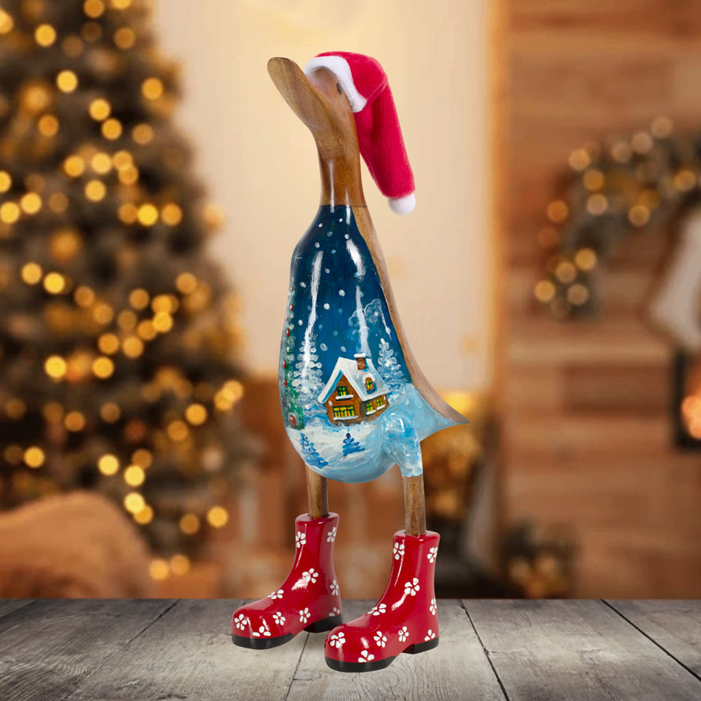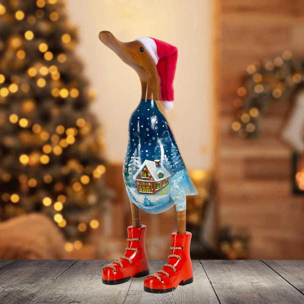 Holzente Handbemalt „ Weihnachtsnacht", Größe L