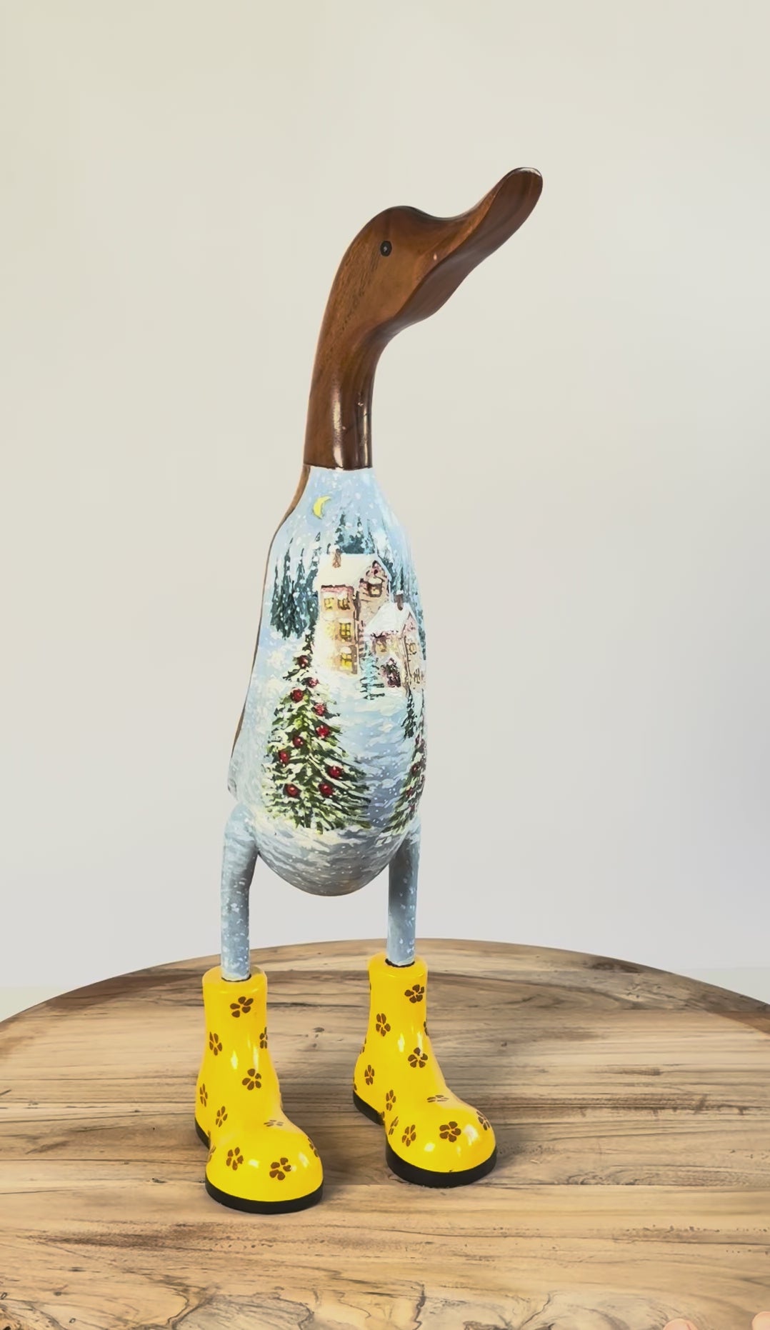 Holzente Handbemalt „Die erste Schneedecke", Größe L