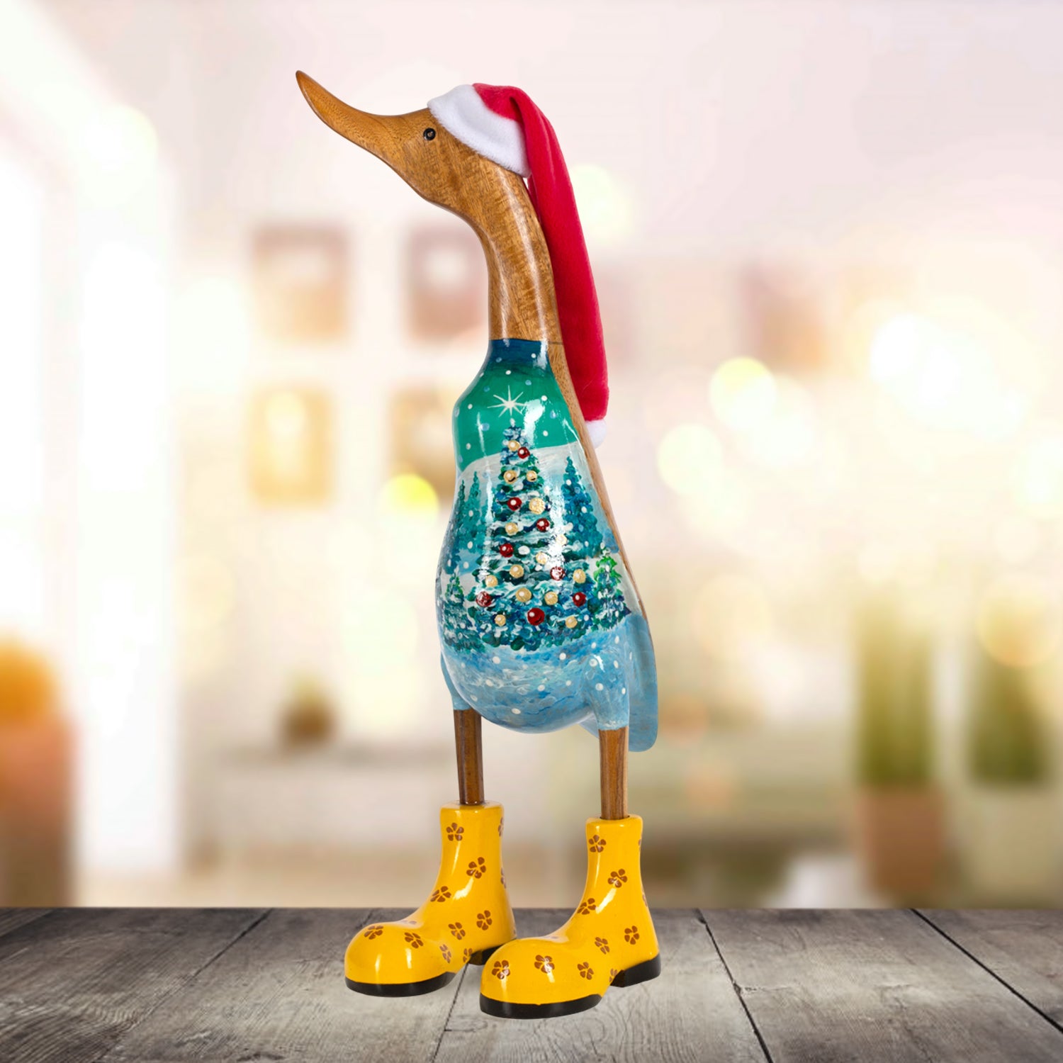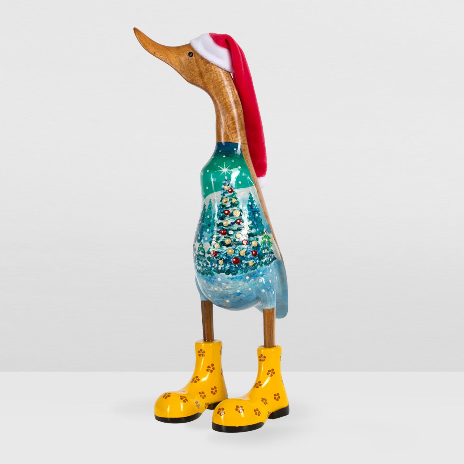 Holzente Handbemalt „Winterbaum", perfektes Geschenk, Größe M