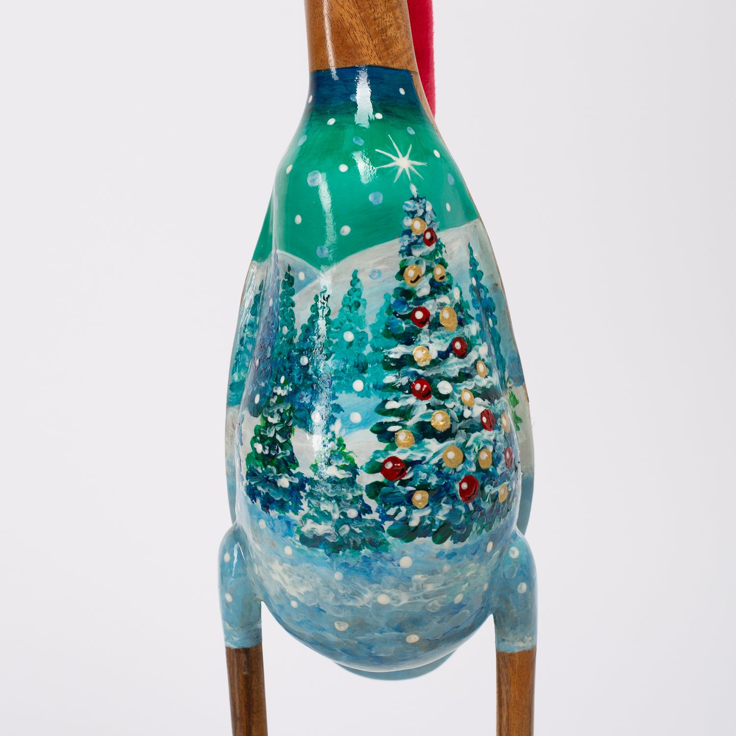 Entdecken Sie „ Winterbaum“, eine außergewöhnliche Holzente, die mit viel Liebe zum Detail von Hand bemalt wurde.
