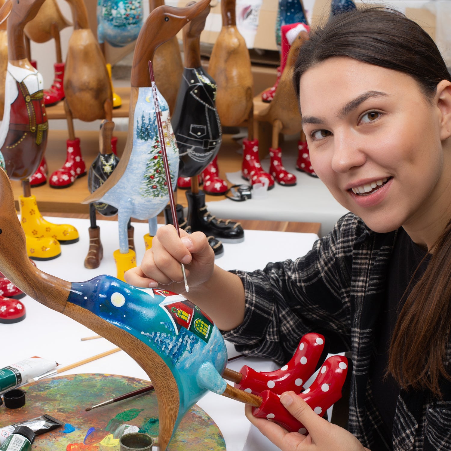Bitte beachten Sie: Jede Ente wird von Hand gefertigt und handbemalt. Daher können Form, Farbgebung und kleine Details leicht von den Abbildungen abweichen.
